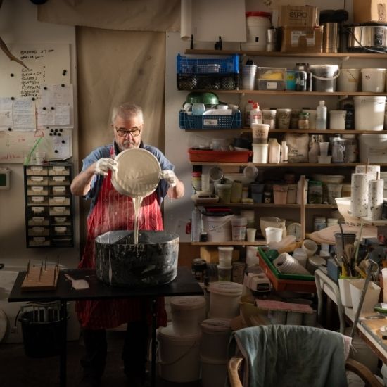 John Wheeldon, a highly skilled potter based in Wirksworth in the Derbyshire Dales, has been refining his craft for 55 years. Drawing inspiration from early Industrial Revolution potters such as Wedgwood, Whieldon, and Greatbach, he creates a distinctive range of tableware that reflects historical traditions while maintaining a contemporary edge. His work is particularly focused on teapots and complementary pieces, showcasing both function and artistry.