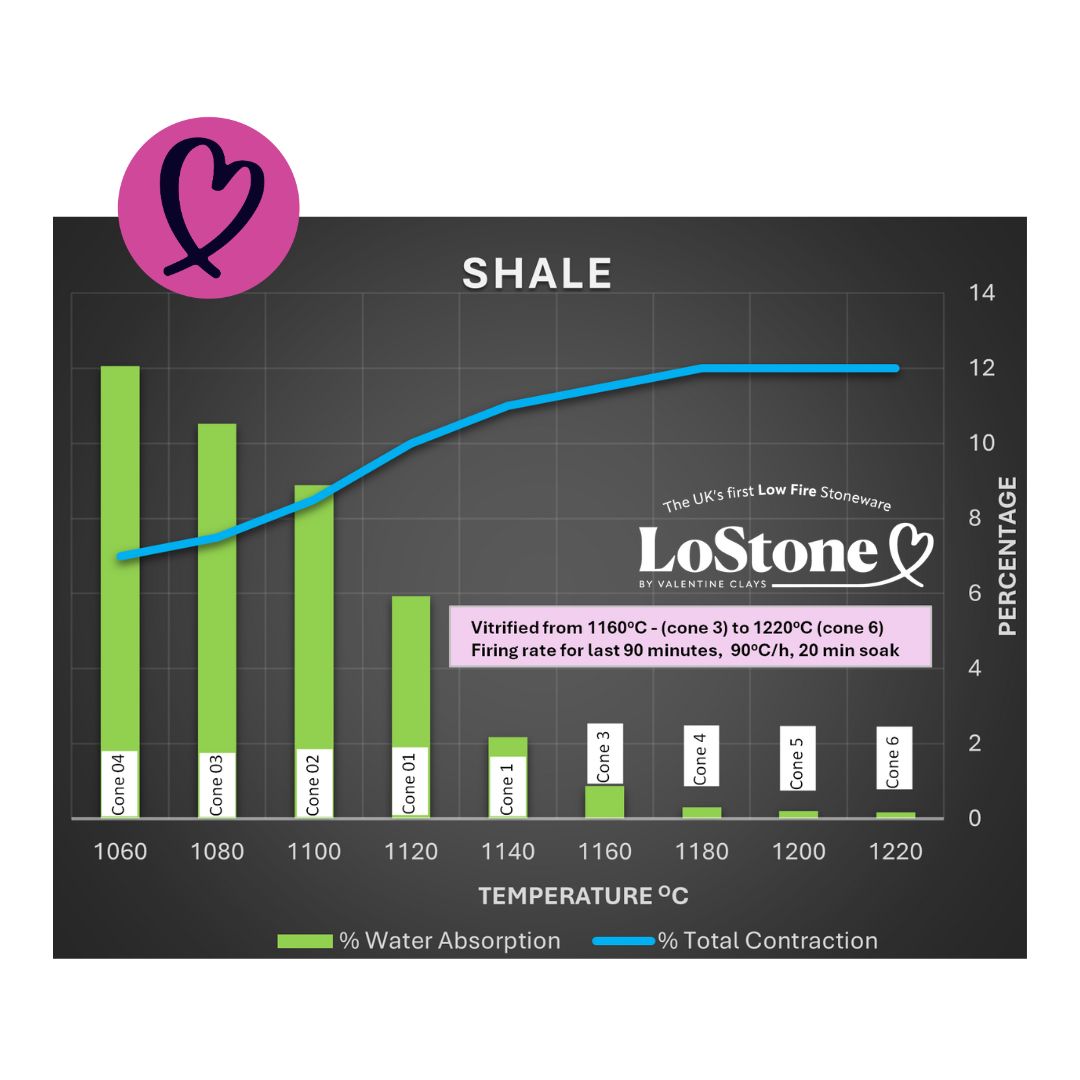 LoStone Shale is ideal for throwing, modelling, and casting with a responsive texture and excellent workability across forming techniques. It's dark tone and subtle lilac hues provide an elegant contrast to glazes, slips, and oxides, making it a favourite for potters seeking a sustainable, cost-effective stoneware that combines distinctive colour with reliable performance.